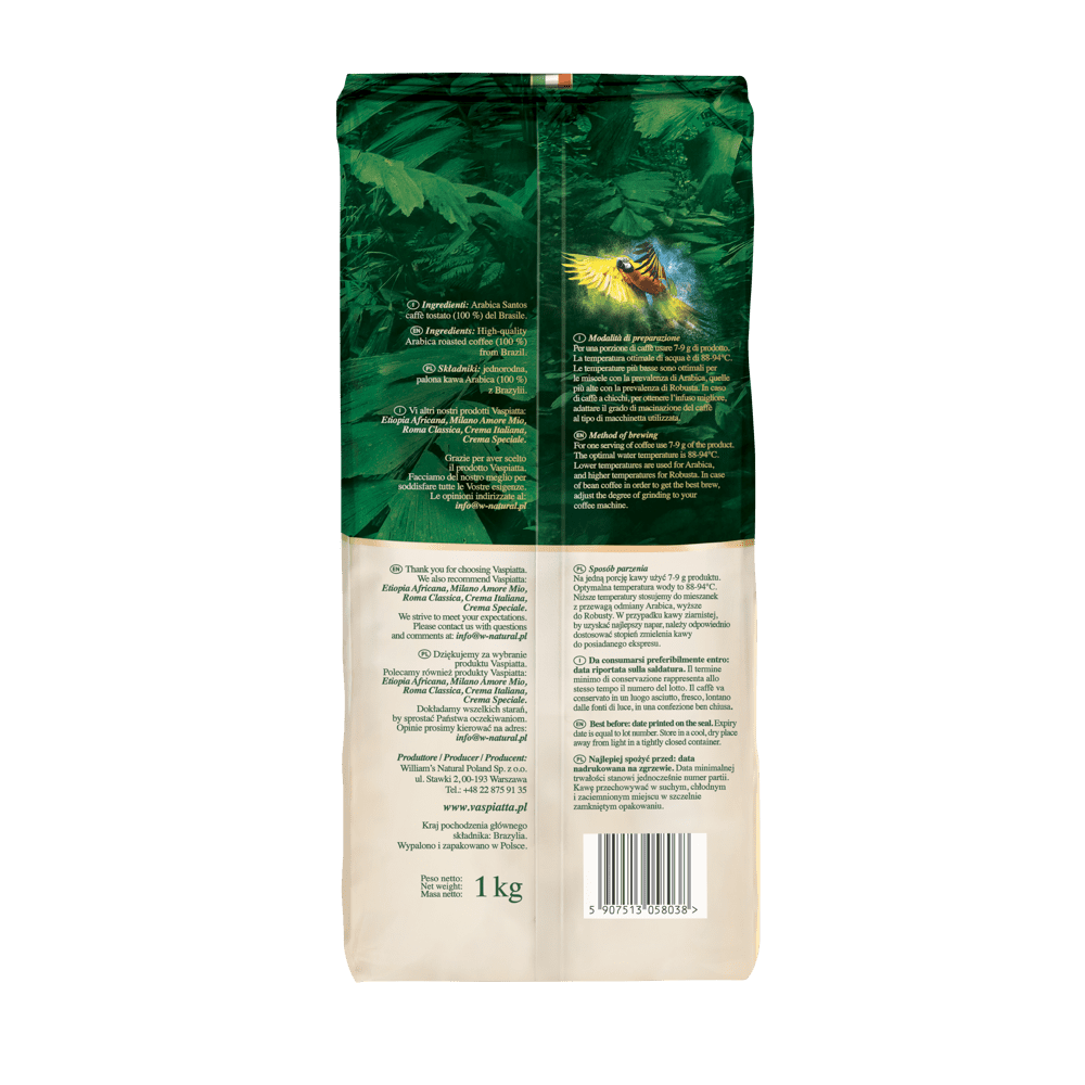 Kawa ziarnista Vaspiatta Brazil Santos 1000gCena: 128,90 zł / szt.