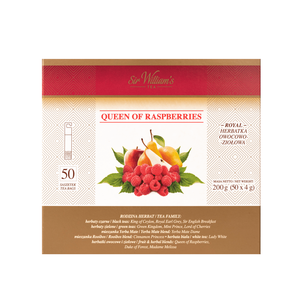 Aromatyczna herbata owocowa na bazie malin, dzikiej róży, jabłka i hibiskusa. Daje napary o głębokiej czerwonej barwie i intensywnym malinowym aromacie. Soczyście owocowy smak sprawia, że świetnie rozgrzewa w długie jesienno-zimowe wieczory, a serwowana w wersji mrożonej wspaniale orzeźwia w upalne, letnie dni.