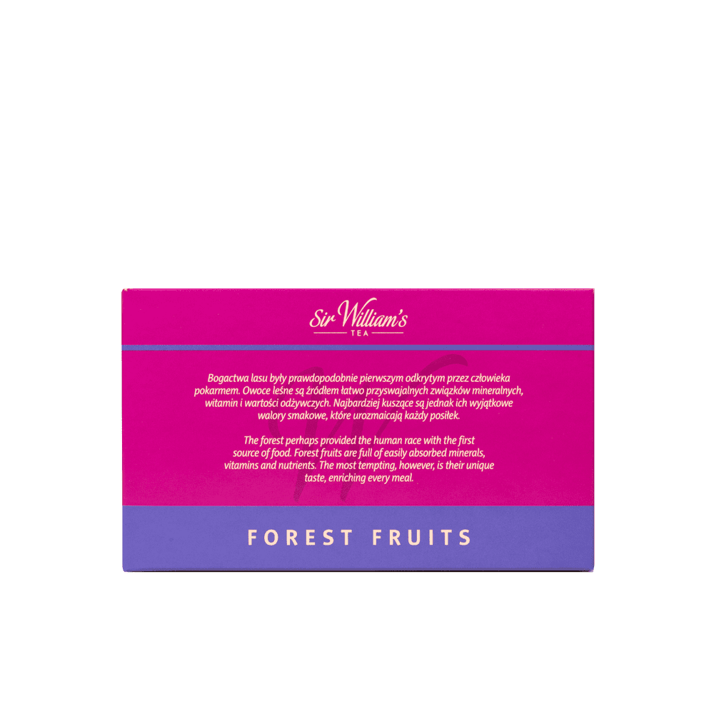 Herbata owocowa z liofilizowanymi owocami: jabłka, owoc czarnego bzu, czarna porzeczka, malin, ananas i hibiskusa. Napar mieni się żywoczerwonym kolorem o niezwykle aromatyczny i zaskakującą symfonią owocowych smaków. Doskonały w wersji mrożonej z lodem, sokiem jagodowym lub świeżymi jagodami.