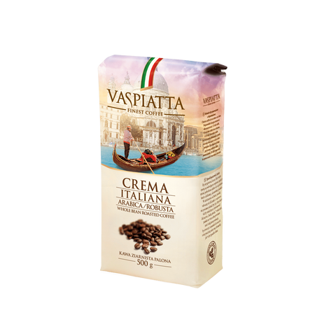 Vaspiatta Crema Italiana to starannie zbalansowana kawa ziarnista stworzona z myślą o miłośnikach klasycznego, kremowego espresso oraz kaw mlecznych. Mieszanka wyselekcjonowanych ziaren Arabica z Ameryki Łacińskiej oraz kaw naturalnych z Azji Południowo-Wschodniej zapewnia harmonijny smak, wyraźne body i przyjemną intensywność aromatu.