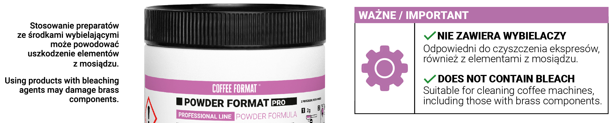 Proszek do użytku profesjonalnego do czyszczenia ekspresów do kawy.