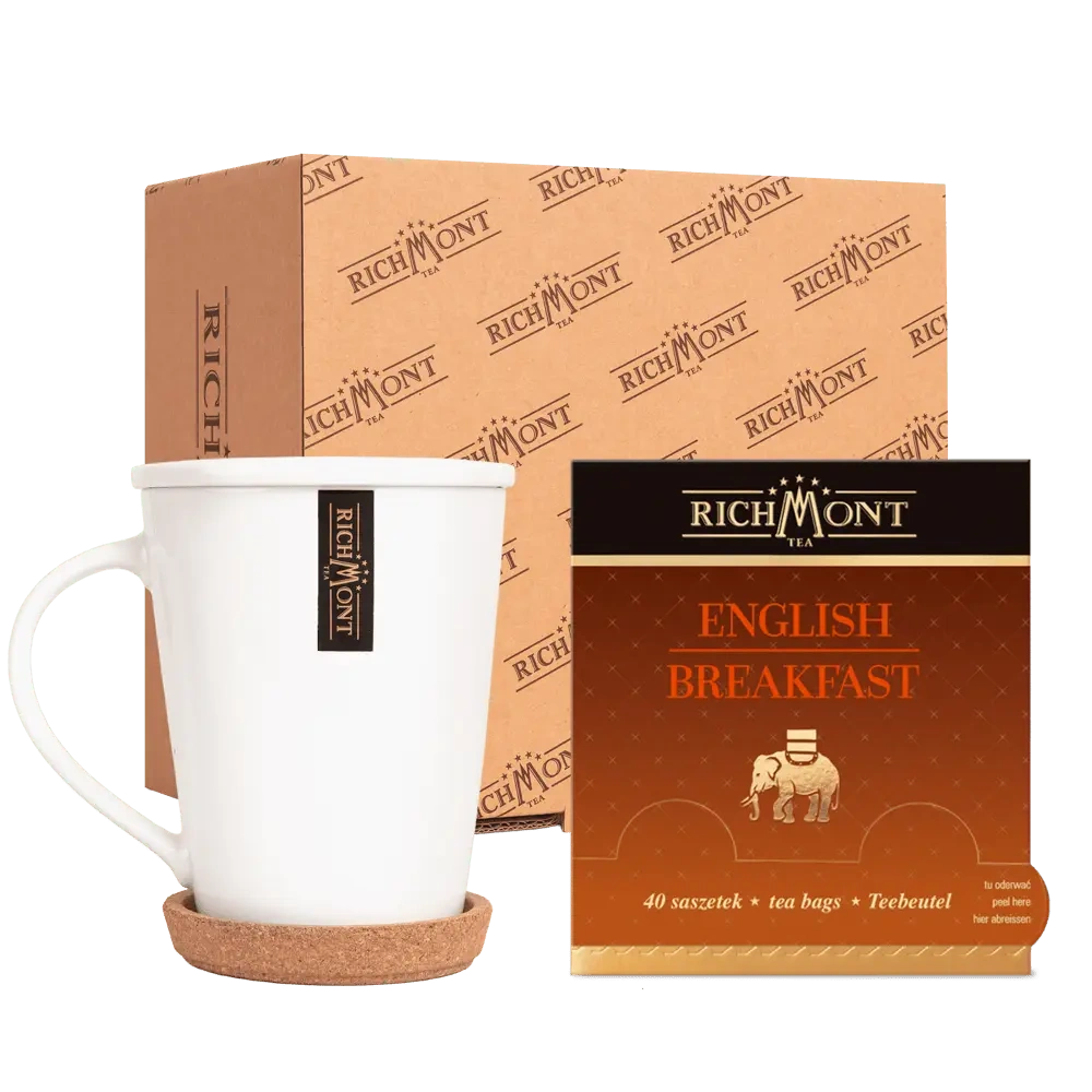 Richmont English Breakfast – klasyczna mieszanka czarnych herbat z Indii i Sri Lanki. Pełny smak, głęboki kolor naparu i delikatna nuta karmelu sprawiają, że doskonale sprawdza się jako herbata śniadaniowa.