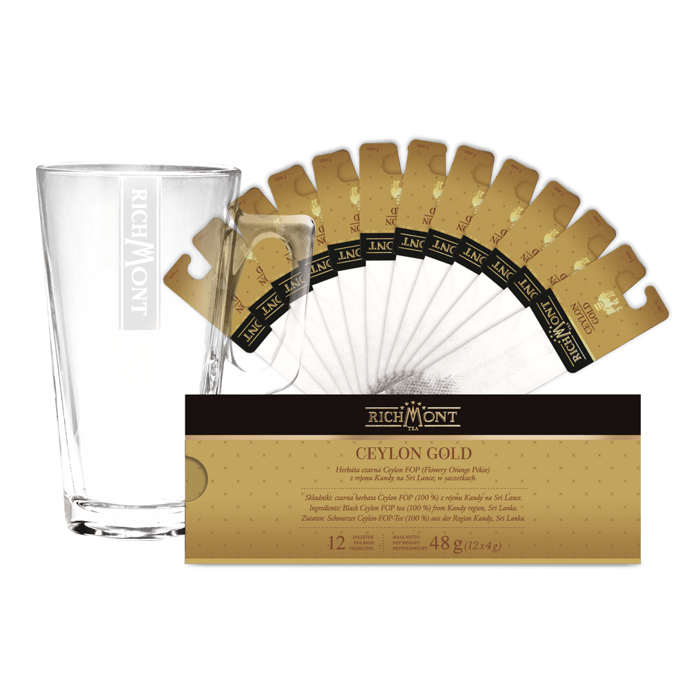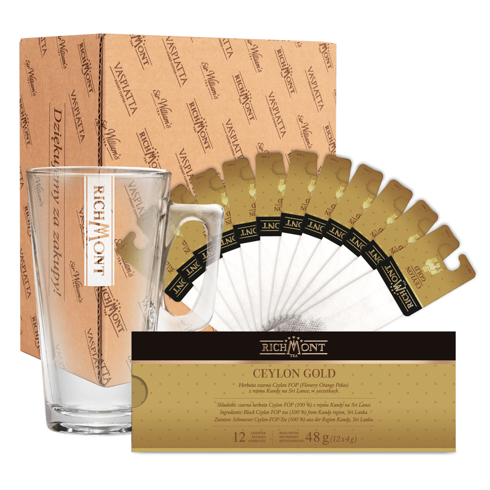 • Zestaw richmont ceylon gold, herbata ceylon gold richmont, czarna herbata cejlon, herbata kandy sri lanka, zestaw herbata + szklanka, herbata premium richmont