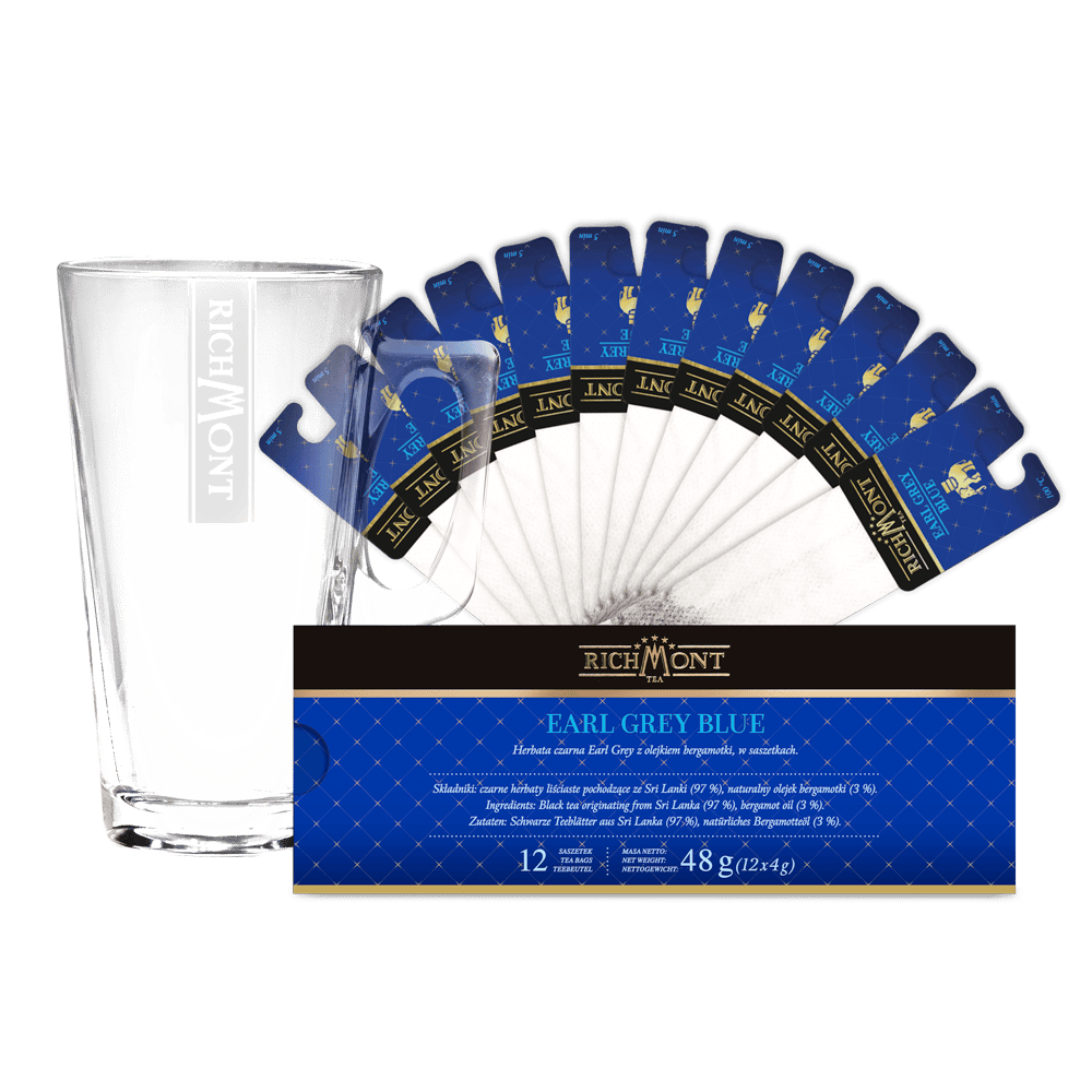 Zestaw Richmont Earl Grey Blue – 12 saszetek + Szklanka Richmont Hot 370 ml
