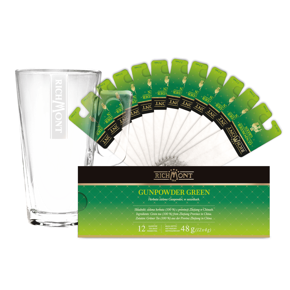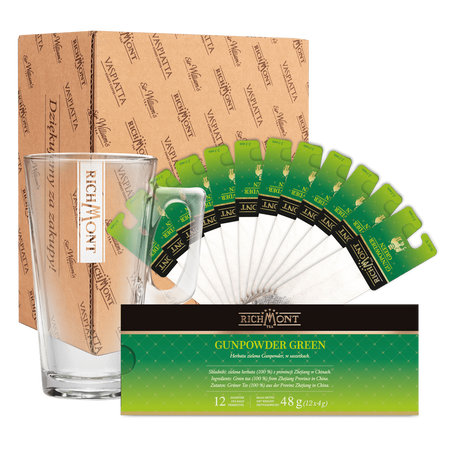 Zestaw Richmont Gunpowder Green – 12 saszetek + Szklanka Richmont Hot 370 ml